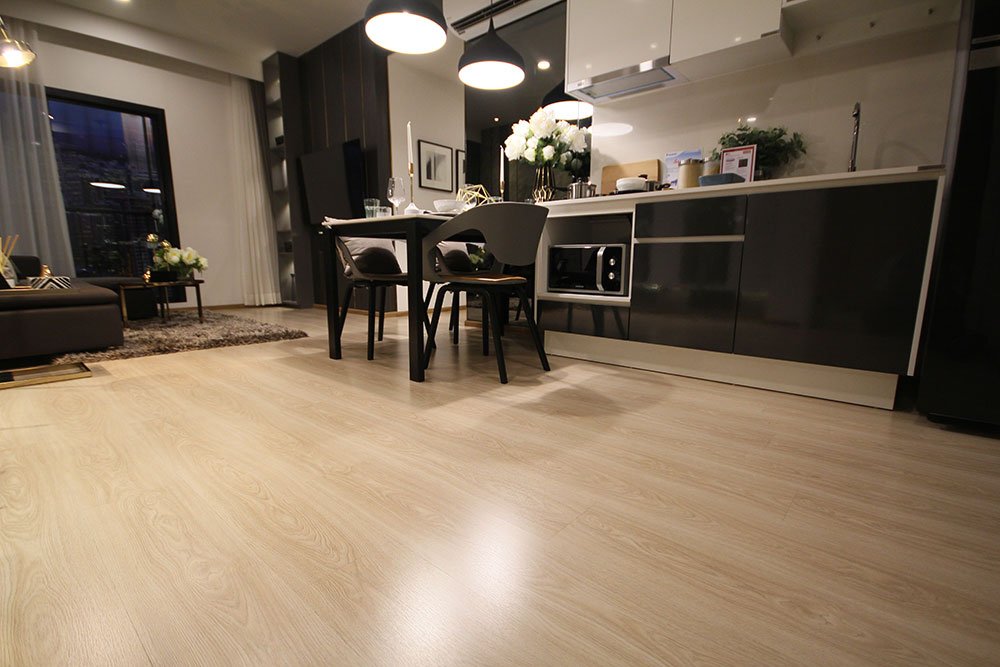 + Độ chống mài mòn AC4, giúp sàn khó bị mài mòn, mờ đi lớp vân phủ bề mặt.